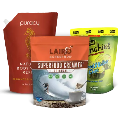 Meet your sustainability goals with recyclable & PCR pouches and film laminations.